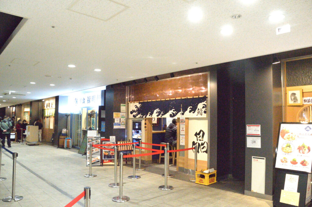 豊洲市場(一般客入場禁止)にある飲食店街 まだ時間が早いので列はできてない 帰路に食事予定