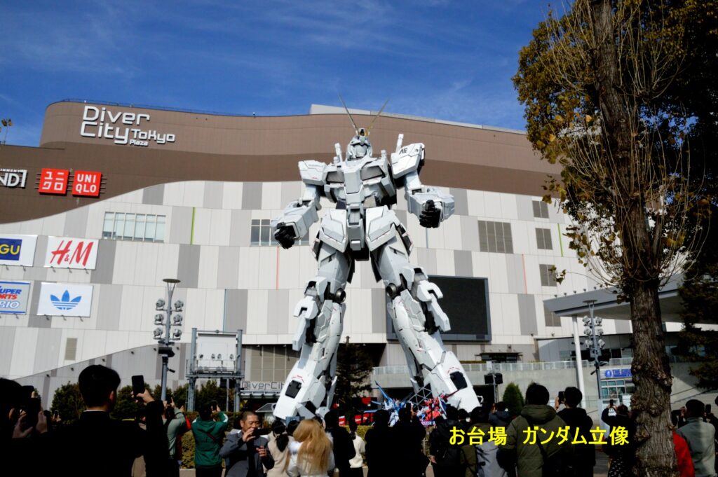 お台場 青海地区のユニコーン 実物大のガンダム立像 時間で昼間もひかる