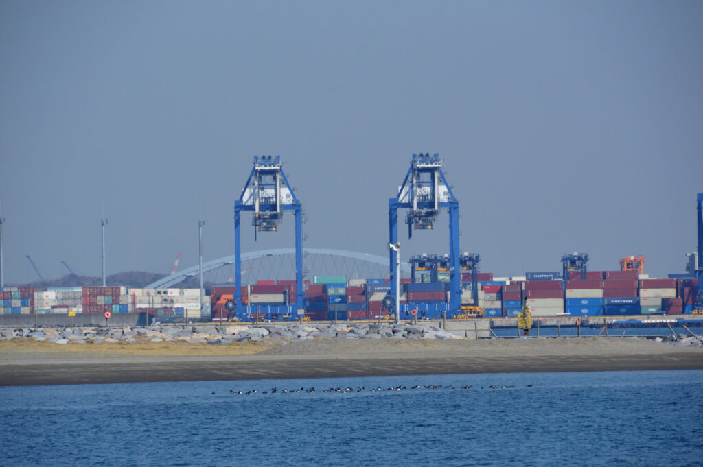 中央防波堤 先にゴジラ橋