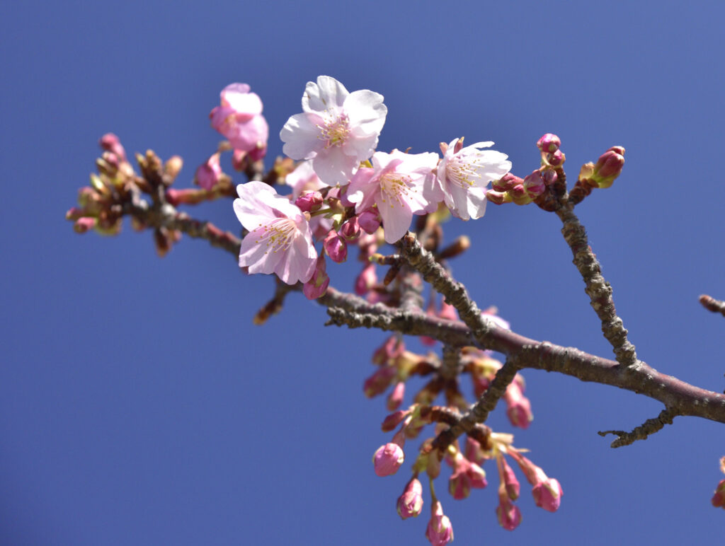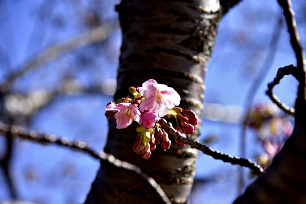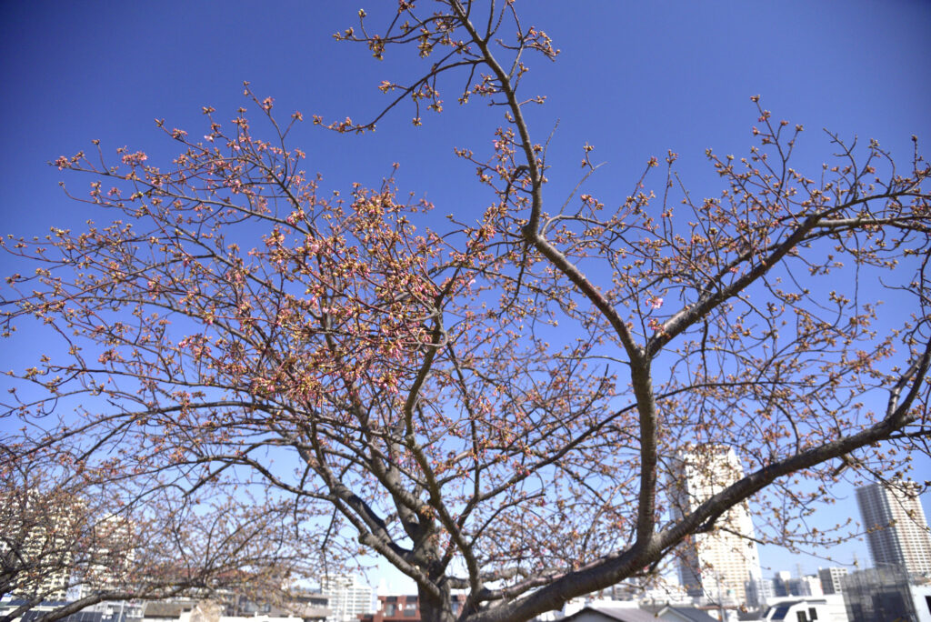 テレビで春を告げる先駆け 伊豆河津と神奈川 松田の2ヶ所の河津桜の開花状況が放映されてる 場所が場所 ちょっと気軽における場所でないので ネットで近場でないか探し 江戸川沿いの場所を見つけ 青空で気温も高い 今年になって夫婦で歩く事と個人では自転車で行きたいところに 腰を軽く