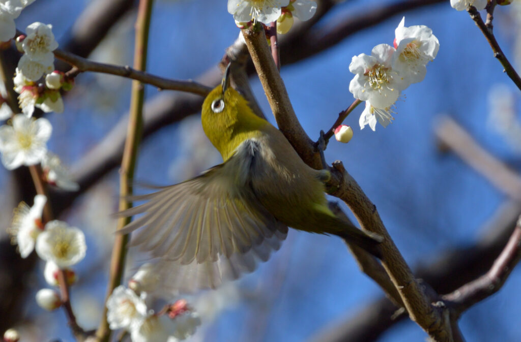 芝公園 梅林 銀世界で目白を追っかけこのまま日比谷通りを皇居北の丸公園に向かう 途中馬場先門 御幸通りで結婚式の先取り ウエデイングドレスとタキシードで写真を撮るカップル多数目撃 小川町交差点を左折靖国通りから北の丸公園に向かう ここからの写真は目白メインです