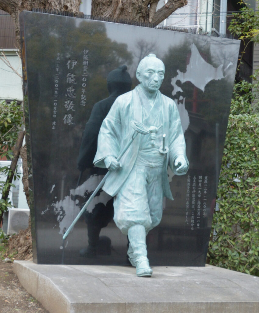 測量旅行出発にあたっては必ず当宮を参拝していたことから縁りの地であるこの八幡宮に銅像が建てられました