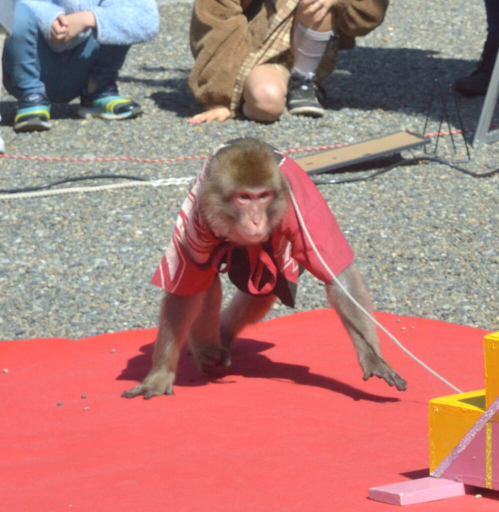 木場公園から今日の目的地の一つ 亀戸天神 梅まつり お参りに来てる人の行列と人だかり 猿回しが来ていました