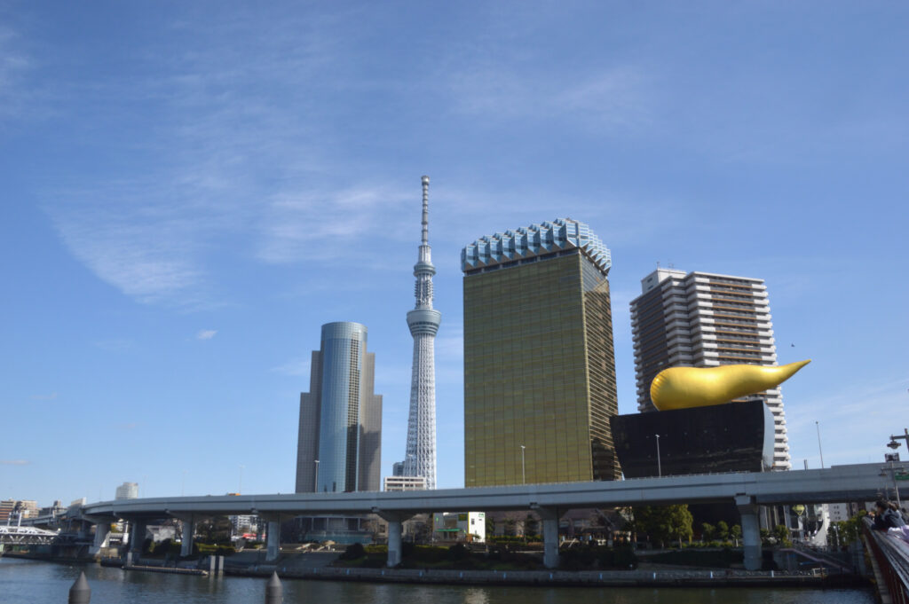吾妻橋から隅田川 首都高 墨田区役所 アサヒG本社ビル