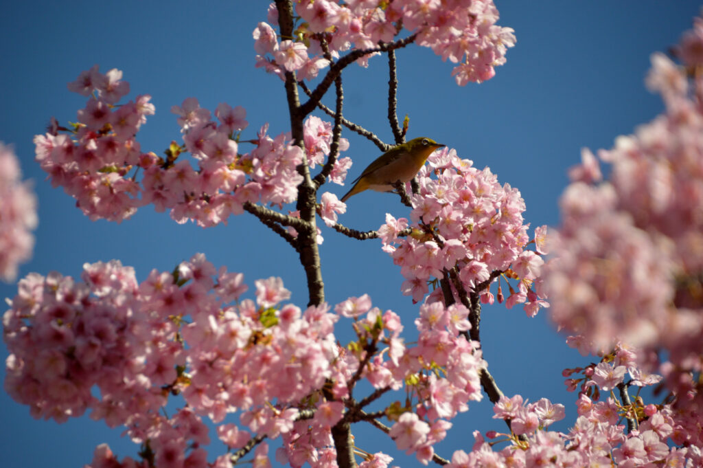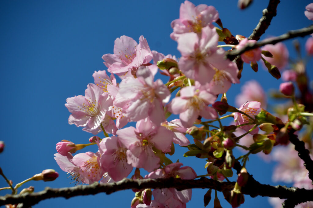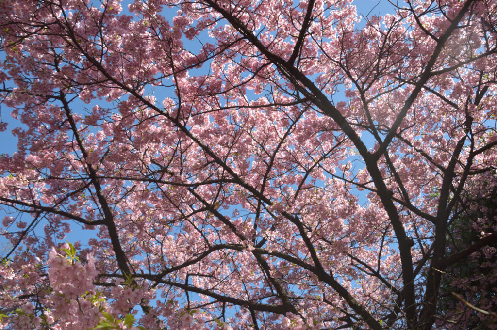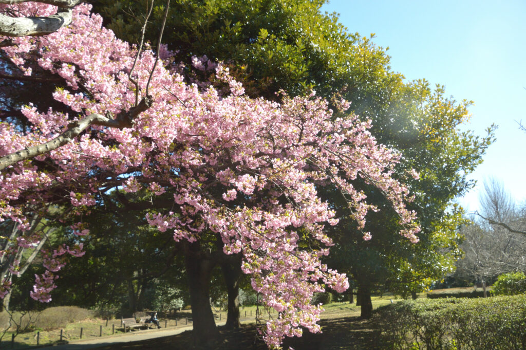 河津さくらが咲いてる 確か2-3本しかない 1本満開