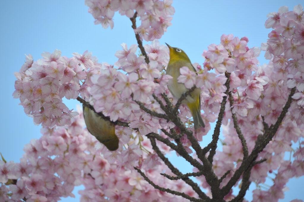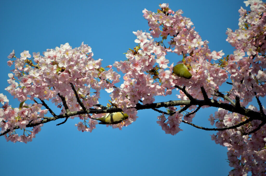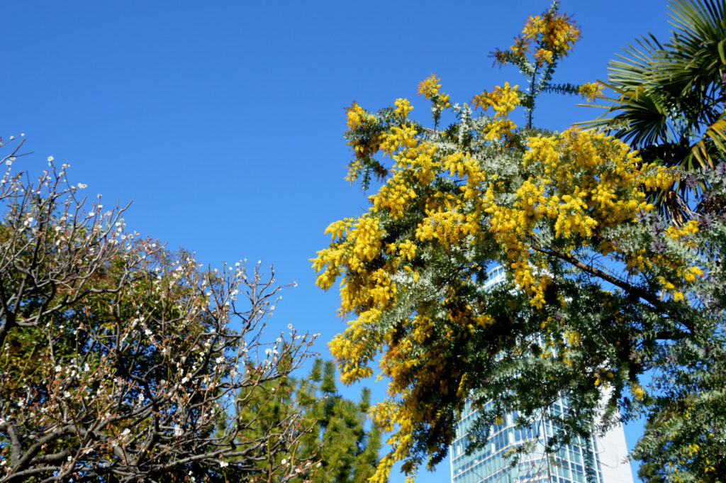 昨日の強風も止み 暖かいし 青空だし 自転車で都心を回ることに 家から広尾 芝 日比谷公園 皇居から北の丸公園 それぞれ河津さくらと目白 追い求めて