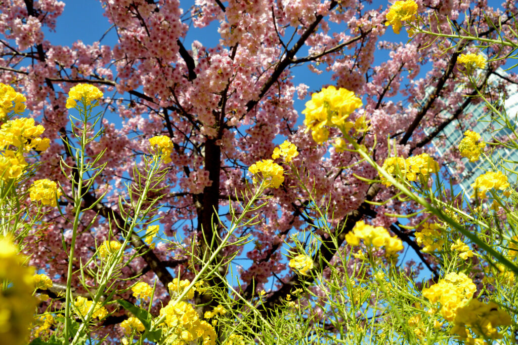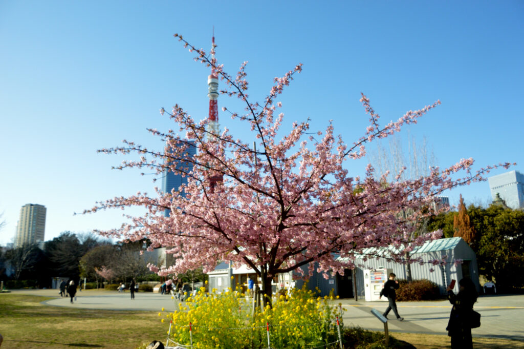 港区立芝公園 河津さくら 菜の花 東京タワー 麻布台ヒルズ