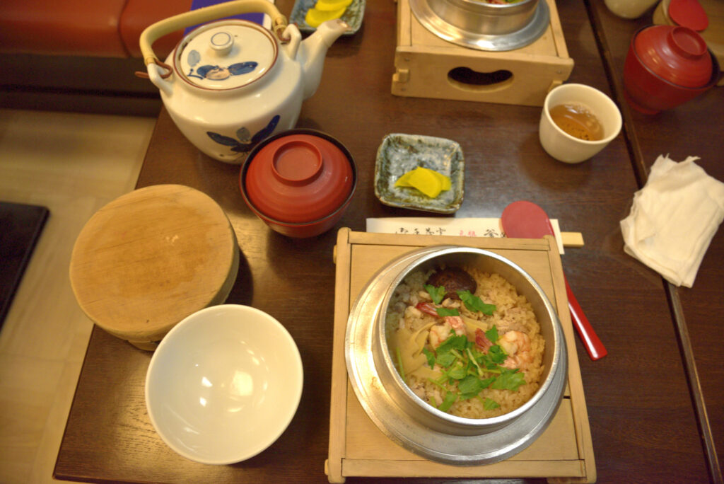 元祖釜めし 春 で昼食 帰路 雷おこし あんみつの梅園 芋ようかんの芋ようかん お店で買い物 お店の人が今日は人出が少ない