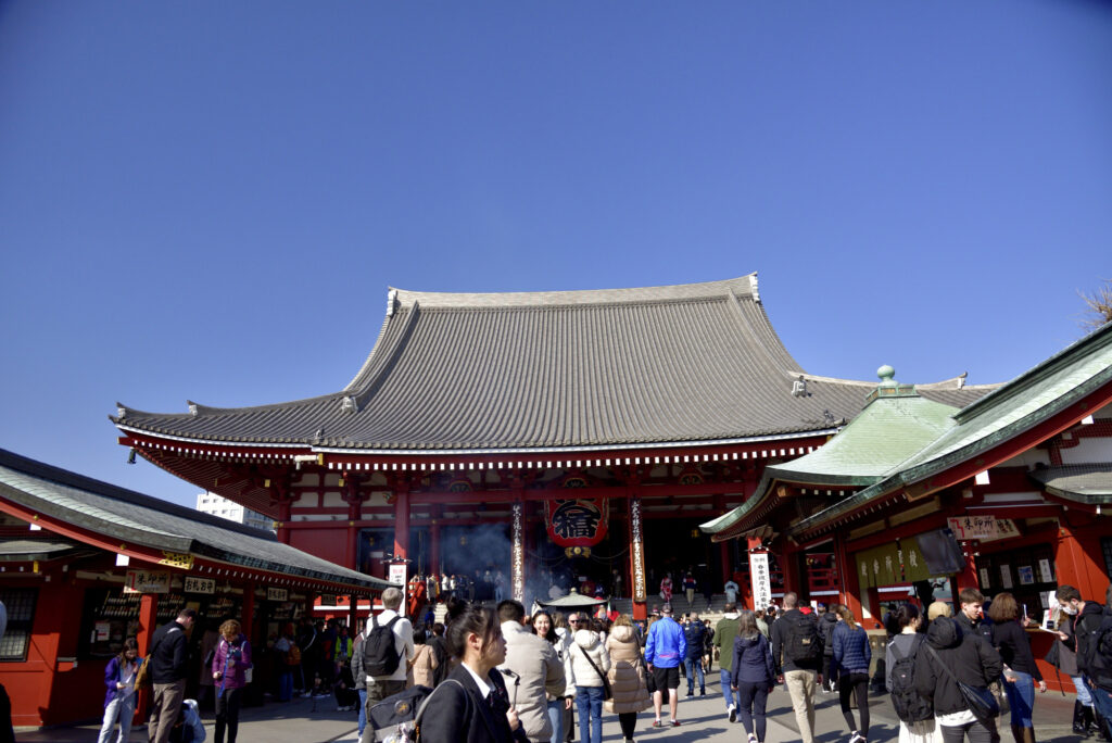今日は青空 蔵前神社に黄色いミモザとピンクの桜 昨年も行ったが 今年は暖かいのか10日も早いが平日 12時過ぎだが結構人が来てる