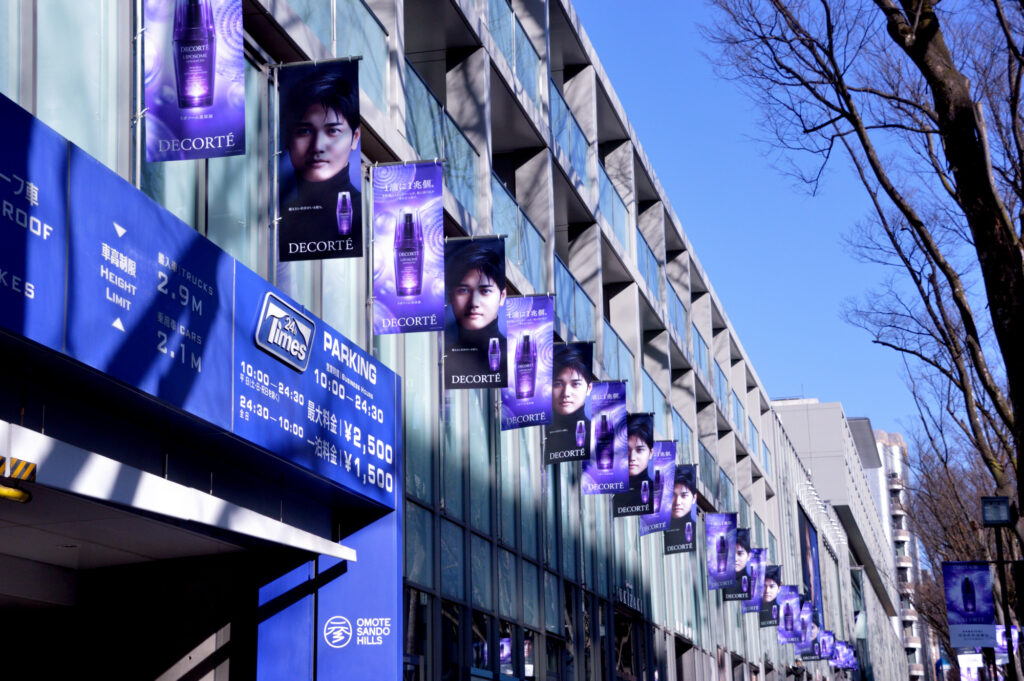 2024年3月16日から4月14日まで、神宮橋から表参道の交差点の街路灯に大谷選手の顔が大きく映ったポスターが飾られています。 街路灯61基に、122枚のフラッグが並び、大谷選手を見ながら表参道を歩くことができますよ 表参道は大谷翔平にジャックされた