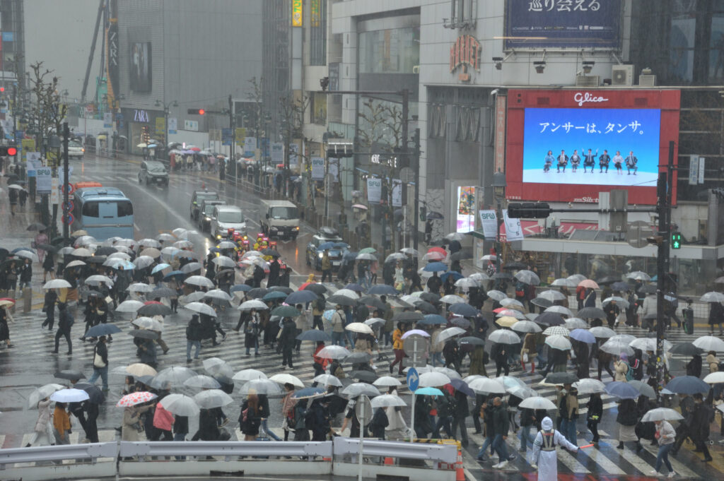 3月26日 雨の渋谷スクランブル交差点