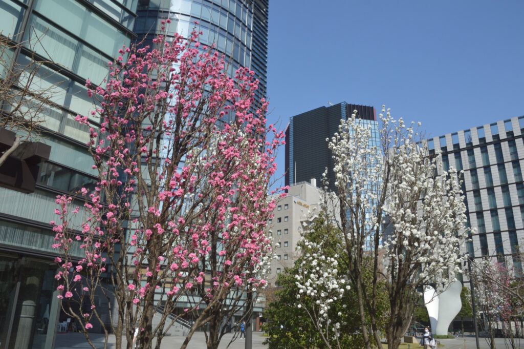 日比谷通りを直進 靖国通りを右折 昌平橋を渡り根岸方面に 公爵西園寺公望本邸跡地の横は紅白のハナモモが今満開