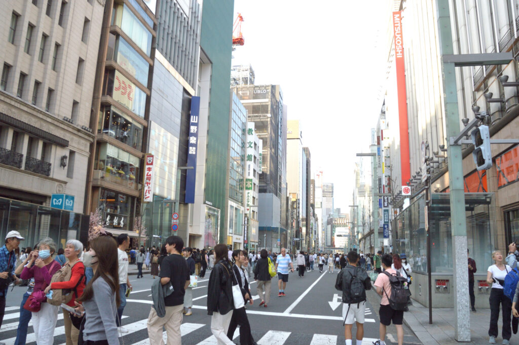 銀座4丁目 角は三越 和光 日産 リコー 今日は休日 歩行者天国