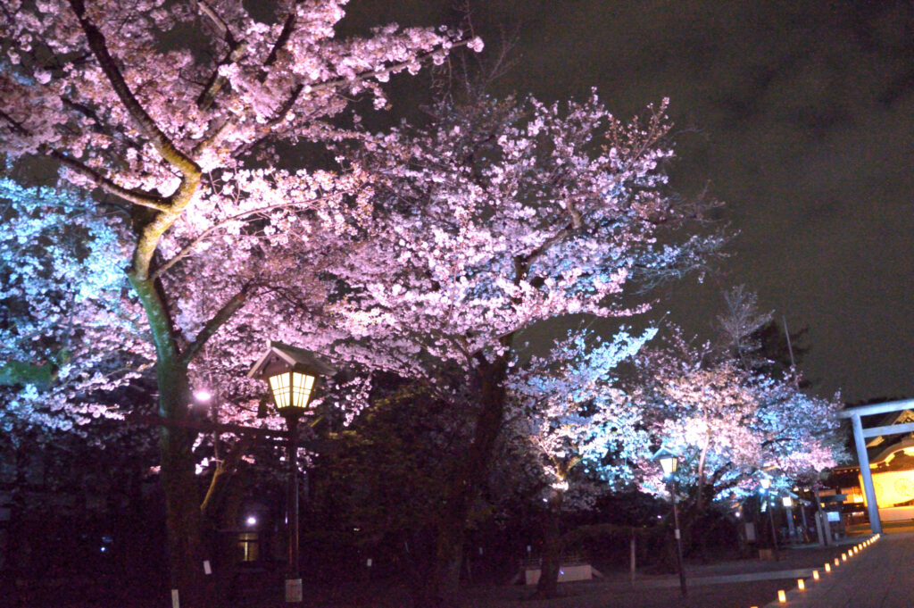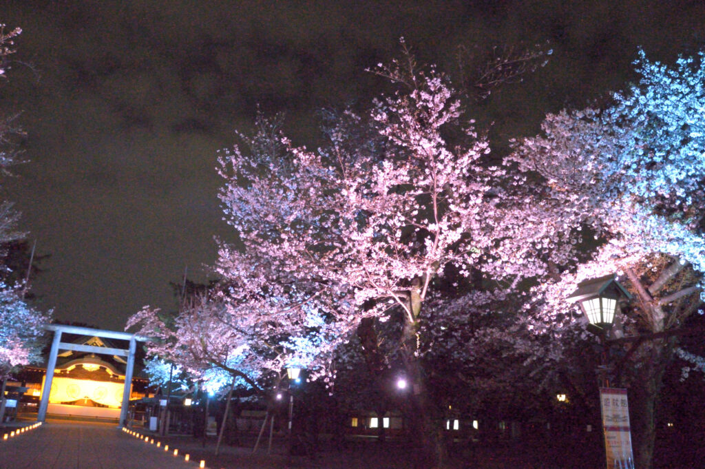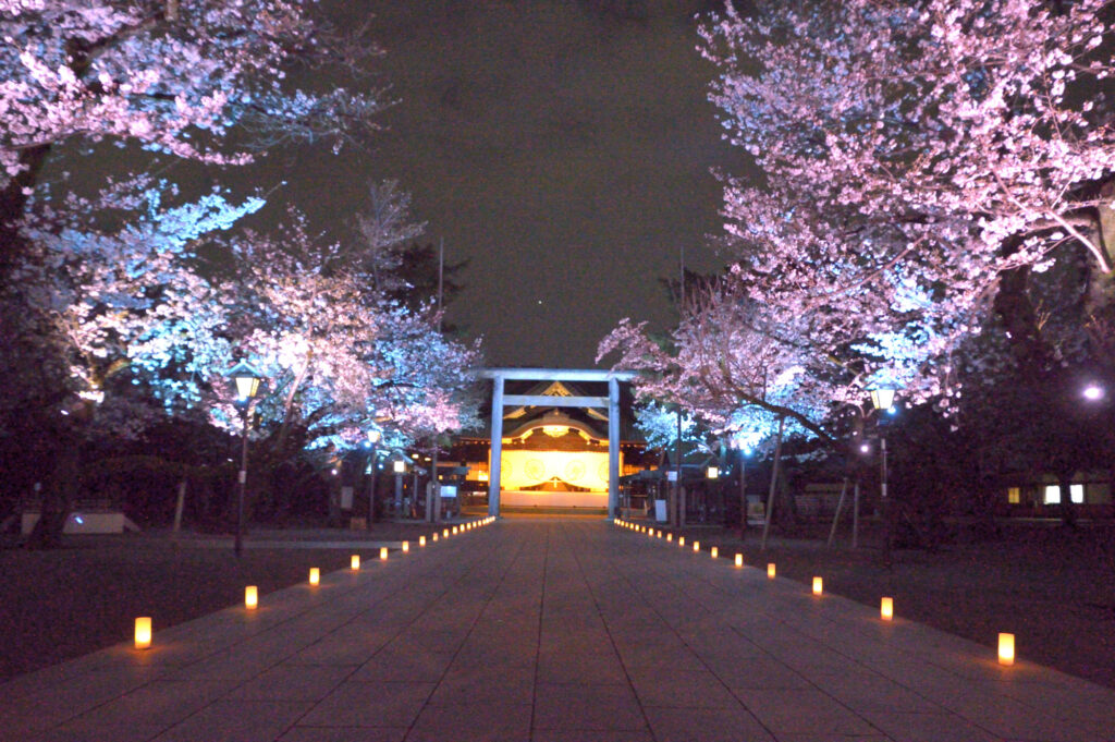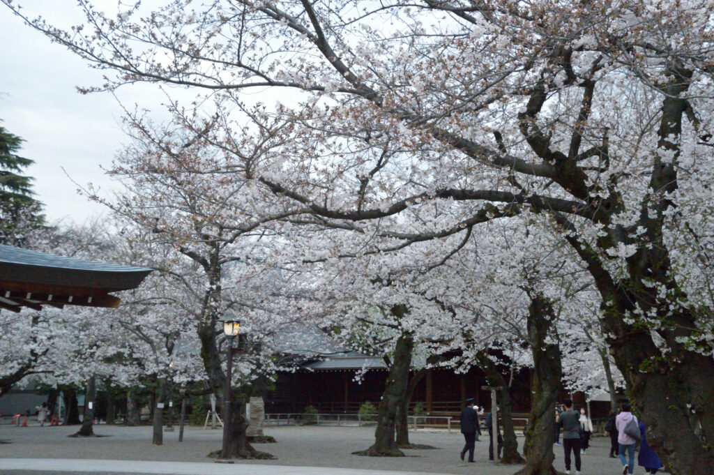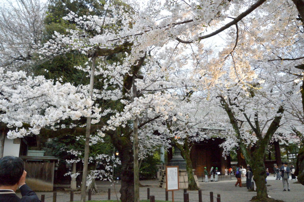 東京は4月4日 桜 14時満開宣言あり 午前中 夫婦で散歩 九段下迄地下鉄で靖国神社を目指す 天気予報で当分青空を望めないので 曇りで桜が映えない夜間ライトUPは3月31日終了したが4月4日ー6日 3日間再開の情報があるので夜間再度来てみた