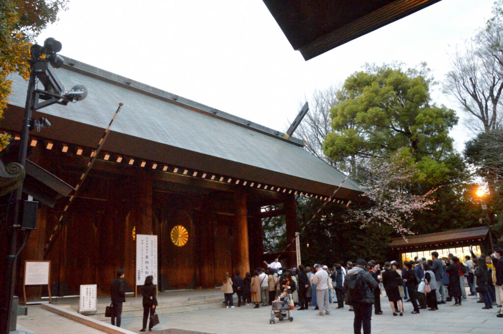 18時になるとライトアップ準備のため一旦閉門 門前で並び開門を待つ列