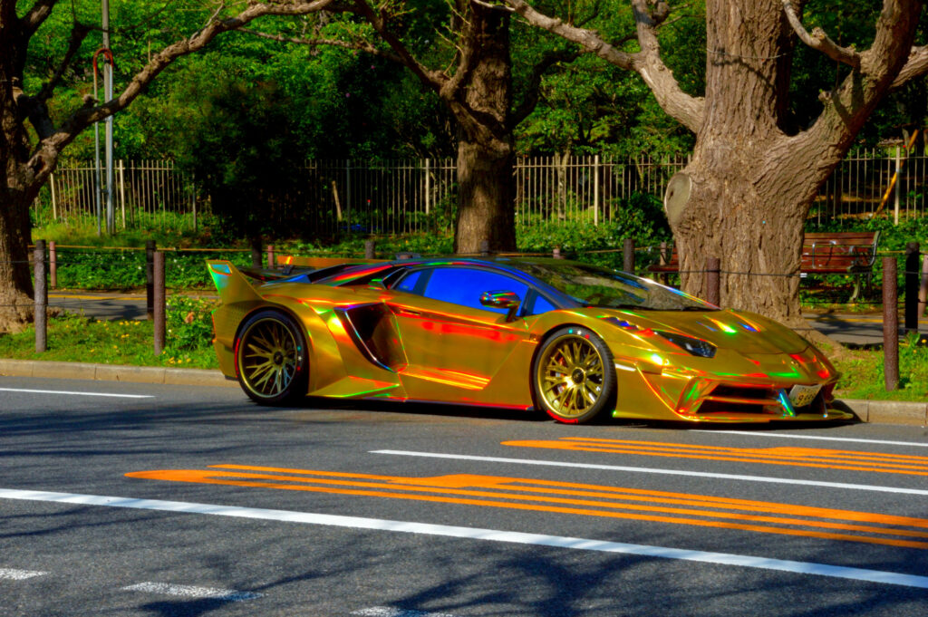 今日は平日 日曜日にはどこからか集まるスパーカーが今日も2台 ど派手な 初めて見る