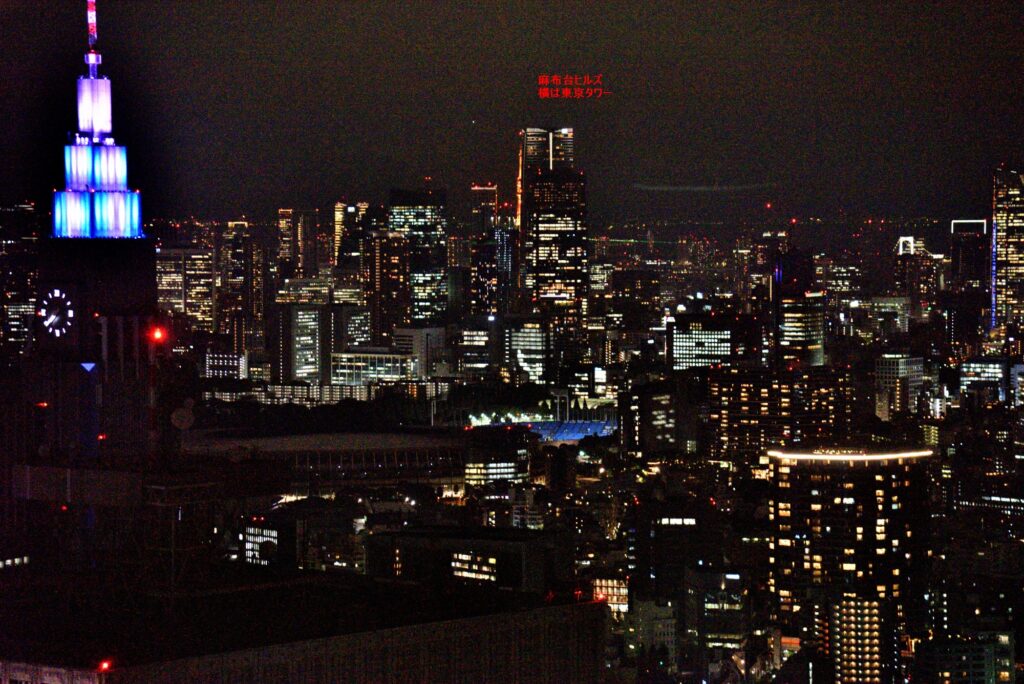 ライトアップは代々木NTTアンテナビル その右手は麻布台ヒルズと 東京タワー