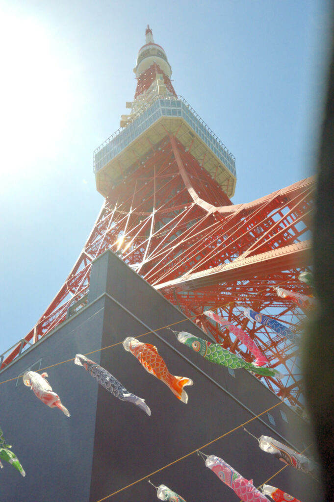 今日はこどもの日 東京タワーに鯉のぼりを見に行きました 定番の赤羽橋からの撮影スポットはSNSで拡散されてるのかインバウンドの観光客が列を作り順送りでポーズ等作り大賑わいです