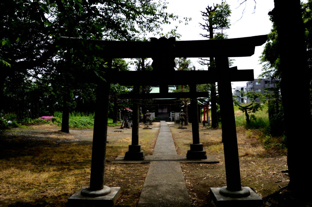 多摩川堤防横にある船島稲荷大明神