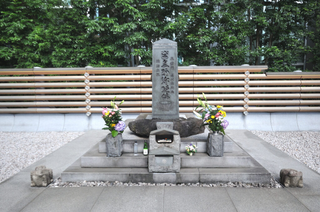 泉岳寺から都心に 大手町 将門塚 平将門は平安時代中期に活躍した武将。民衆からの人気があり、篤い信望を受けていたと伝えられている。数々の戦いに勝利し、「新皇」を自称。関東地方で新国家の独立を宣言した。当然、朝敵となり939年、藤原秀郷と平貞盛によって討伐された。 その後、将門の首は京都に送られ、さらし首になった。「3日後。無念の死を遂げた将門の首は目を見開くと白い光を放ち、東の方角に飛び去り、現在の首塚がある付近に落ちた。すると辺りは夜のように真っ暗になり、大地は大きな音を立て揺れ動いたといわれています」
