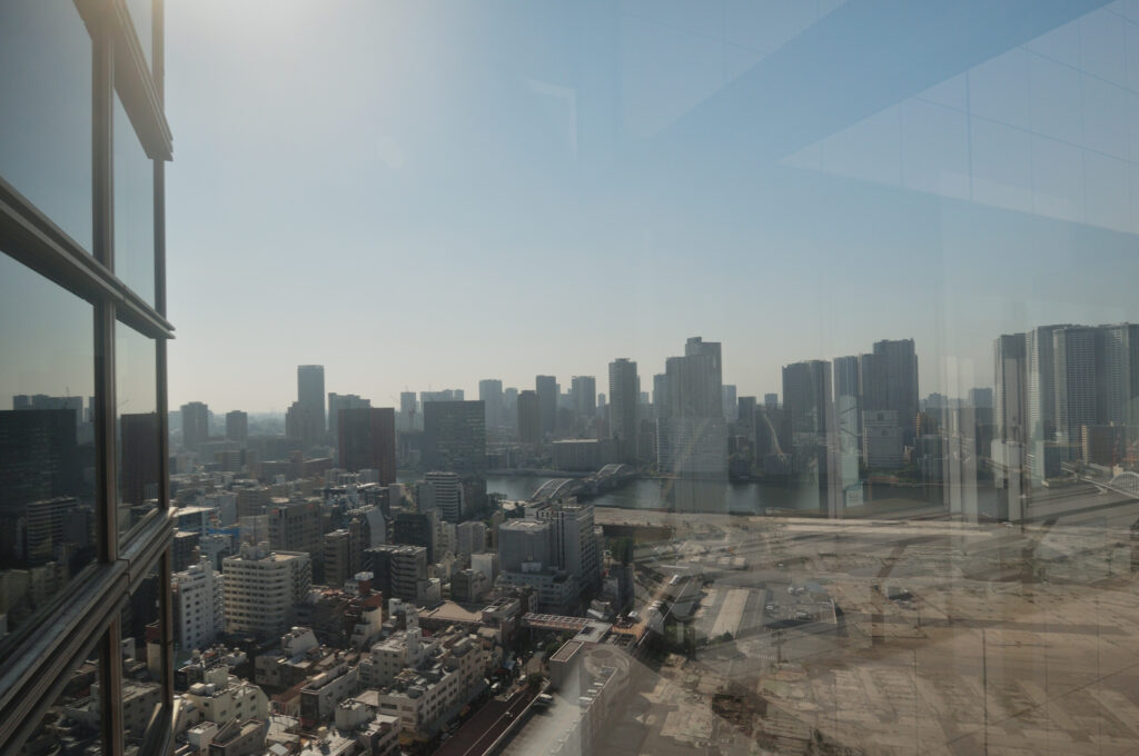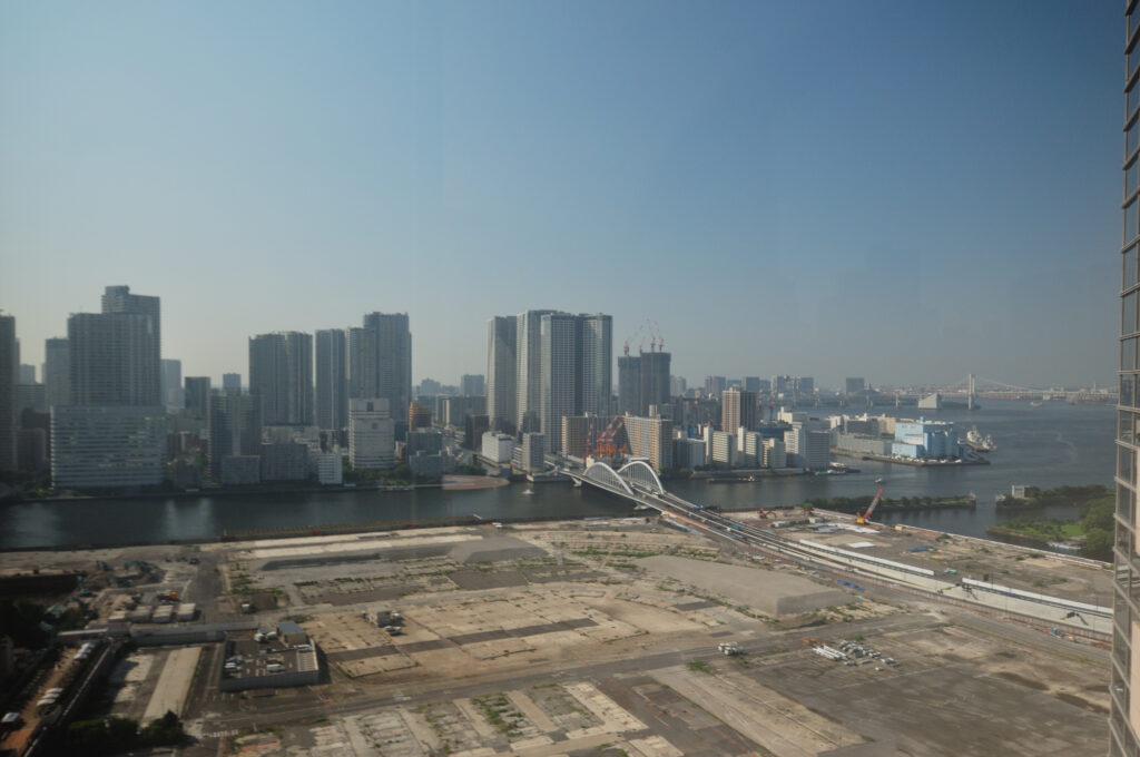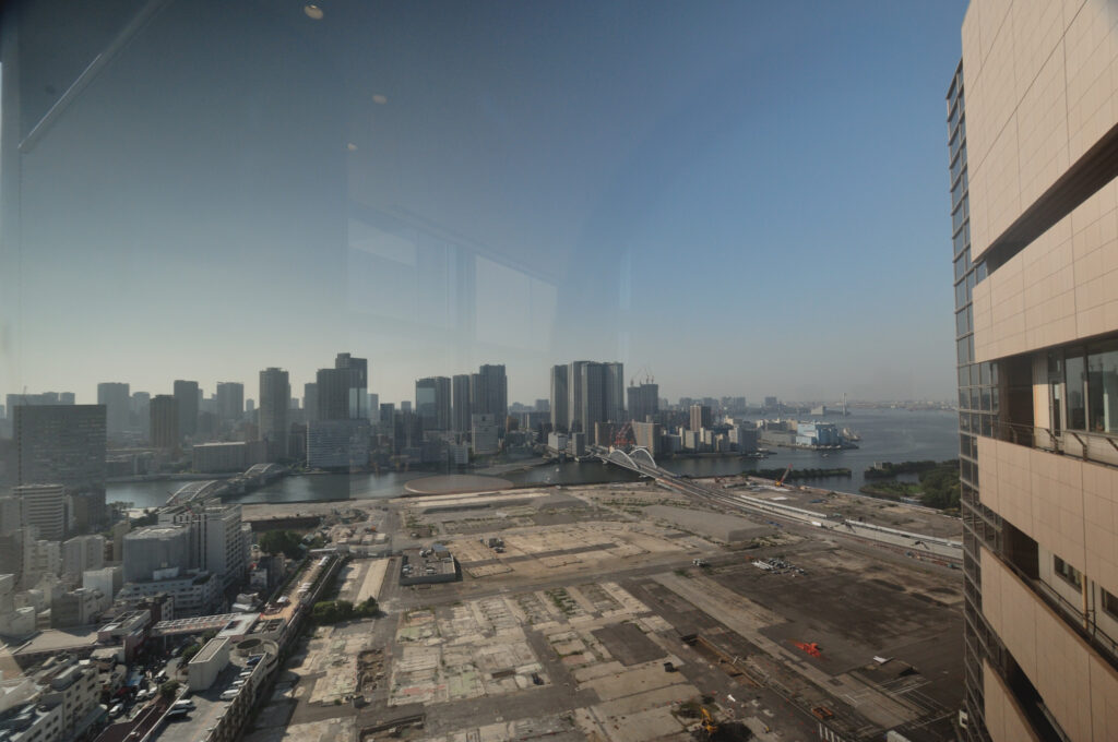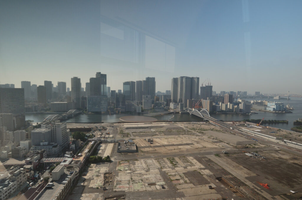 築地がんセンター19Fから築地場内跡地の現在 銀座方面は食堂に入ると写せるがまだ開いていない