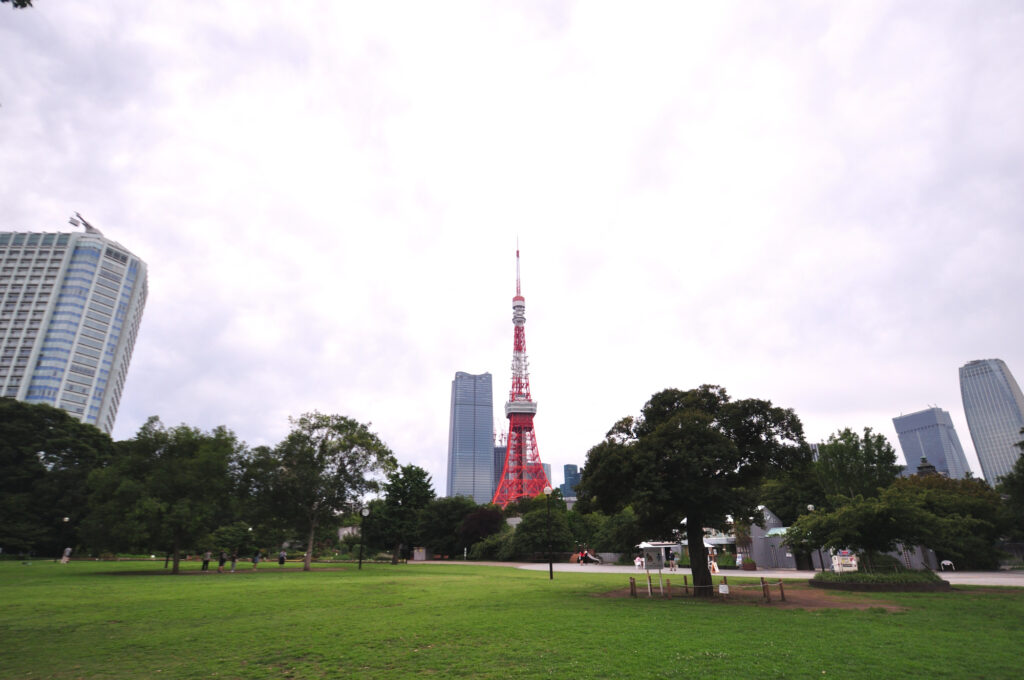 芝公園から 東京タワー 麻布台ヒルズ 左手はプリンスホテル