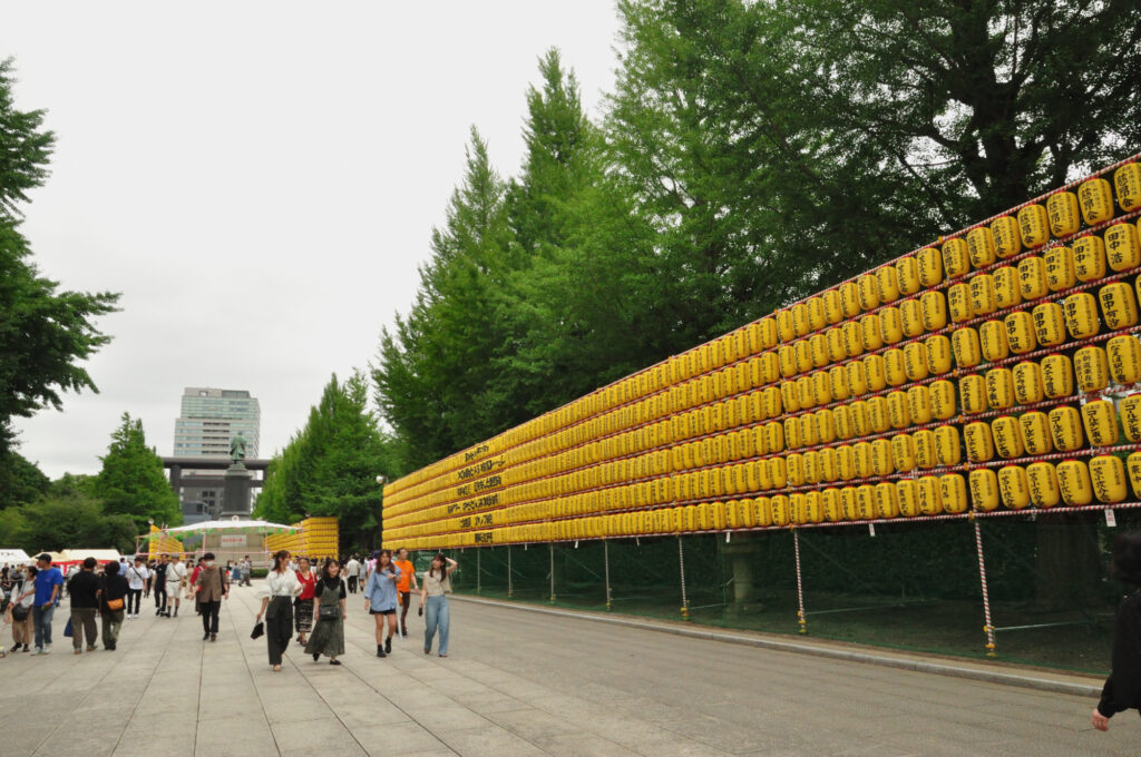 今日の走行ノルマ達成のため都心をぐるり 皇居桜田門から九段下 田安門に向かうと靖国神社で祭礼をやってるのを見つけ寄ってみた 戦没者の慰霊祭り みたままつり
