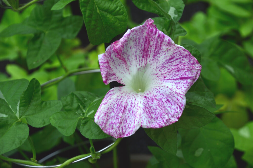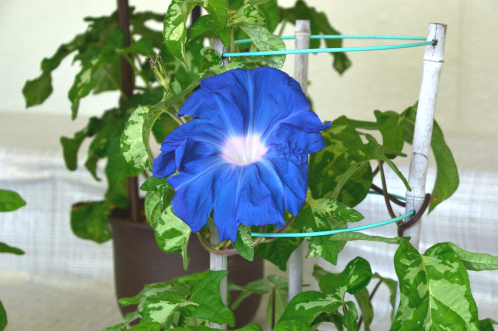 今日まで開催中の超大輪朝顔展示会 10時前だったので 花弁がしおれてない