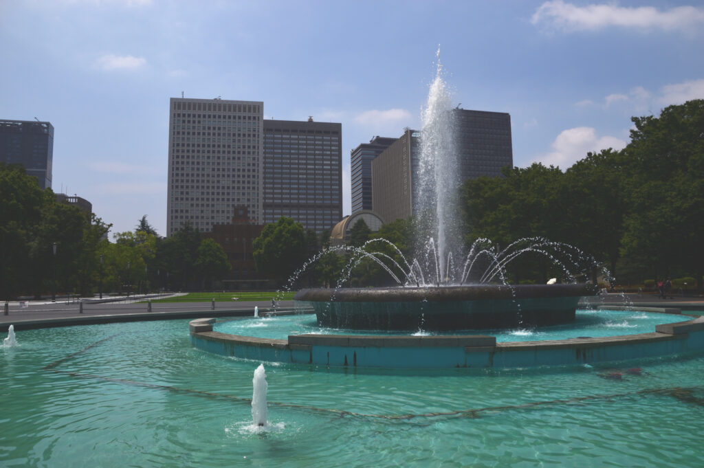 広場が改装中で囲いがあったが今日ではずれ噴水広場がすっきりとした