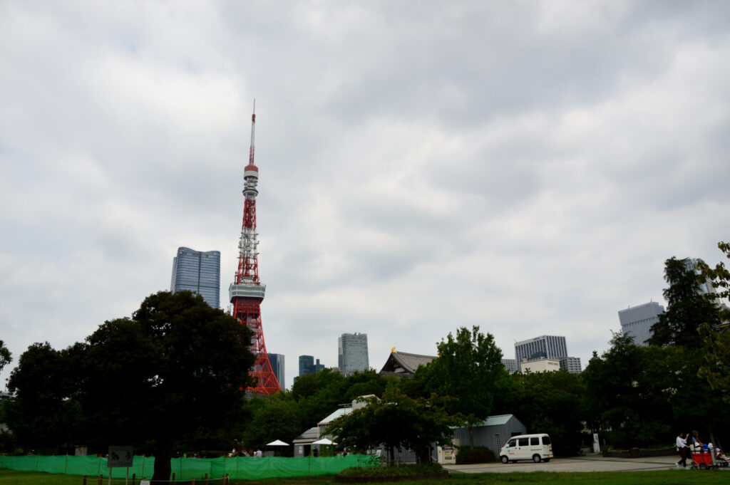 プリンスホテル前から港区立芝公園に 芝生のひろば 午後になるとここでくつろぐ人 グループの団体等々が多く散見する