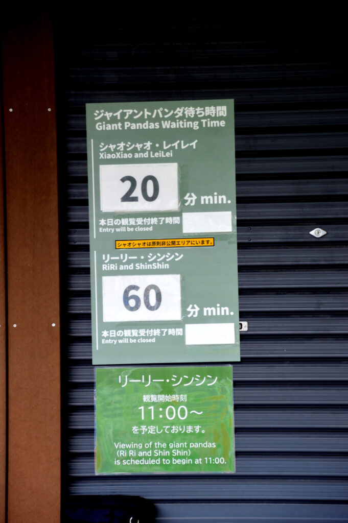 今日は台風余波 入場するための列はないが来月中国に返還されるパンダ リーリー。シンシンを見るためには60分待ち 昨日は80分待ち
