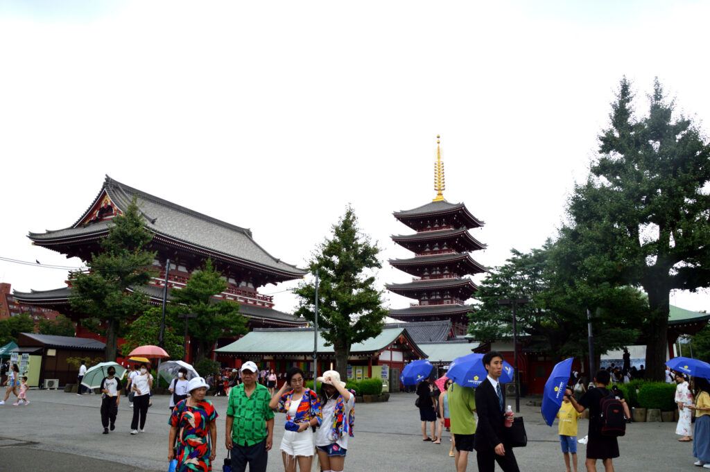 宝蔵門と伝法院五重塔 雨が降り始めた 観光客も少ない