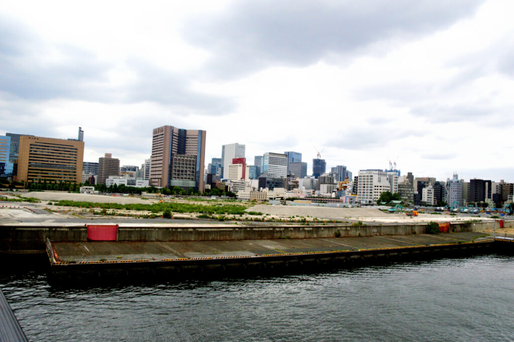 築地場内跡地 今しか見れない風景 左朝日新聞本社 その右 癌研築地病院