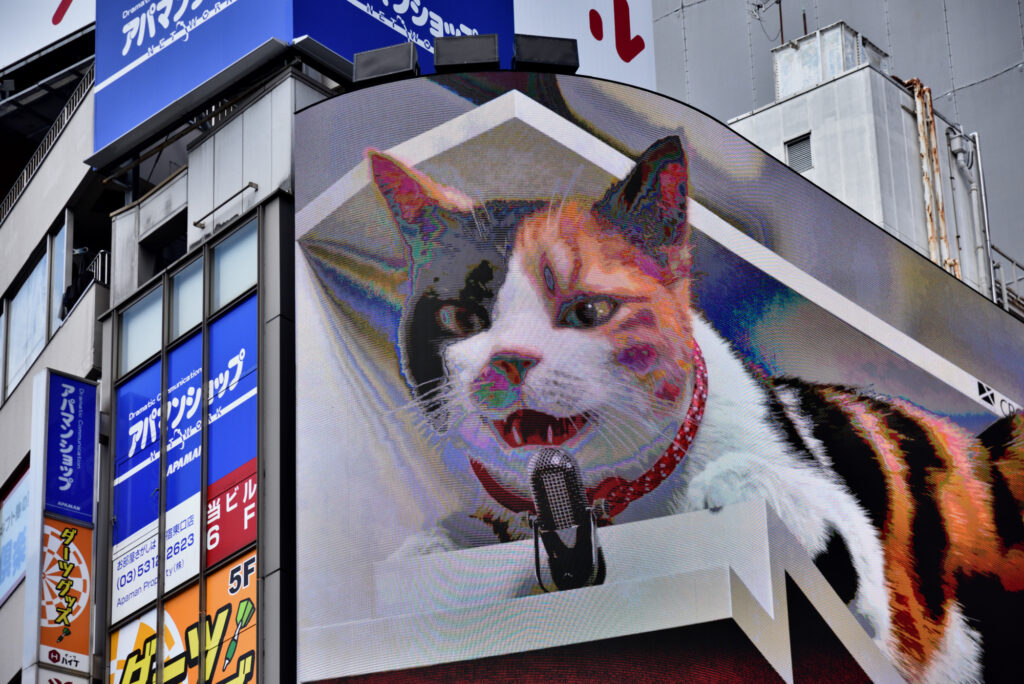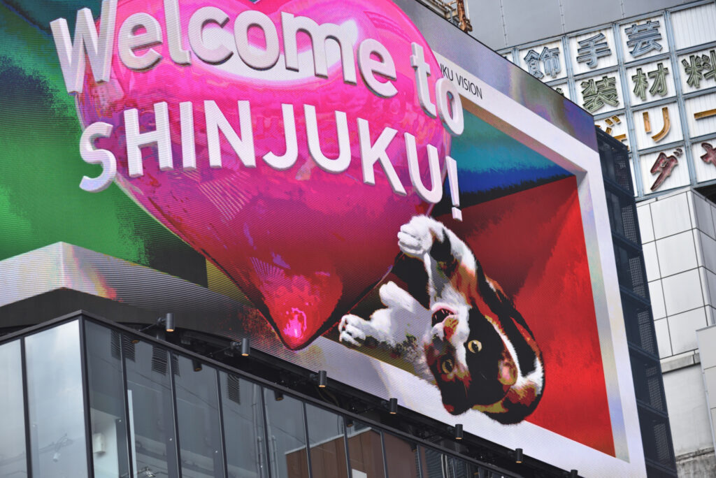 新宿駅東口 歌舞伎町に向かうビルの屋上 飛び出す広告で有名