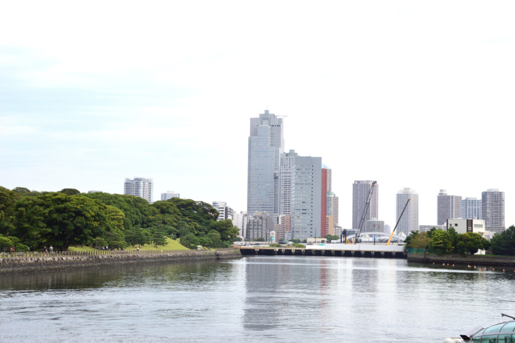 竹芝桟橋から築地場外に抜ける途中に右手に浜離宮を囲む運河の風景