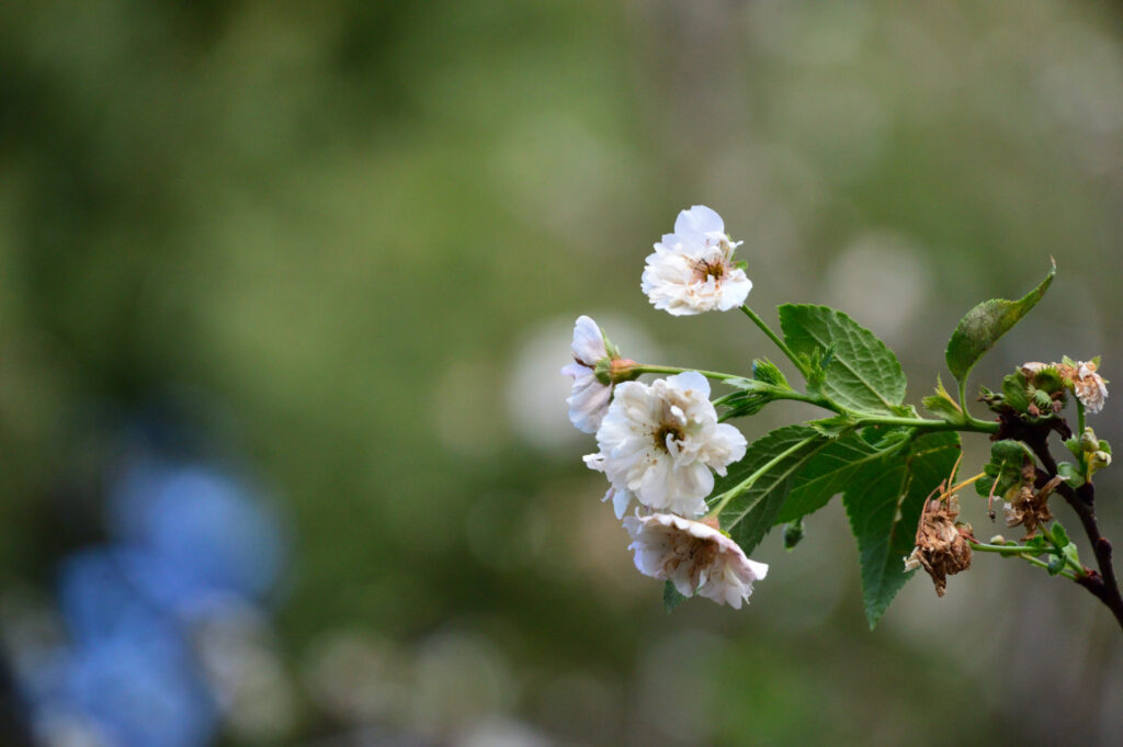 桜が咲いていました 小福桜と立て札が