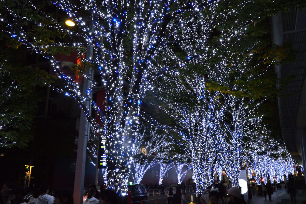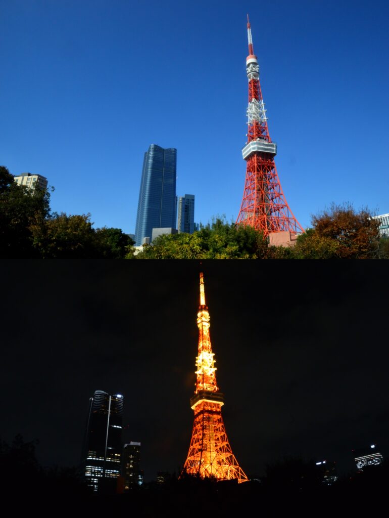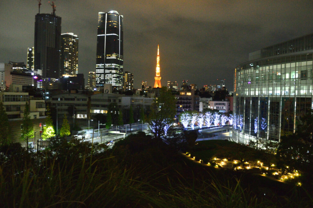 朝から青空 紅葉の状況を東京ミットタウン六本木に隣接する桧町公園 及び乃木神社に