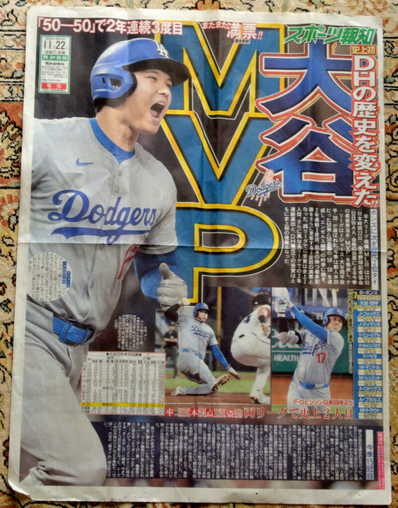 11/22 午前8時のニュースで大リーグ 大谷翔平 満票でMVP受賞 これは号外が出るな 野次馬 号外を狙って新橋機関車広場に行ってみた 待機中 なかなか来ない テレビクルーが引き揚げ始めたので慌てて聞いてみた 配布は終了してた テレビクルーはNHK 善意でスポーツ報知 朝日新聞の号外をくれました ありがとうございます