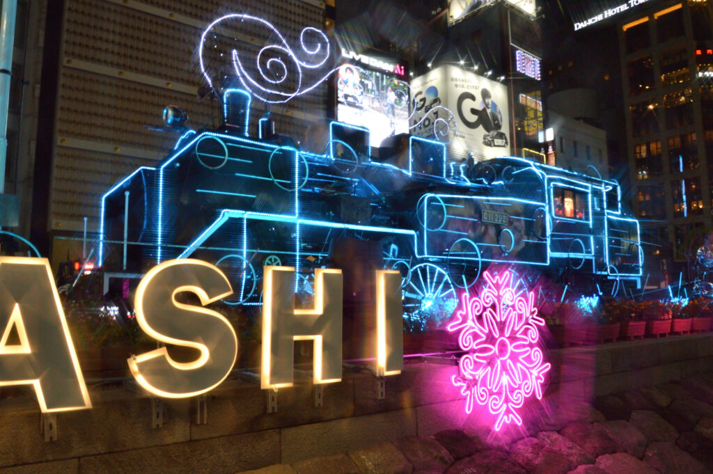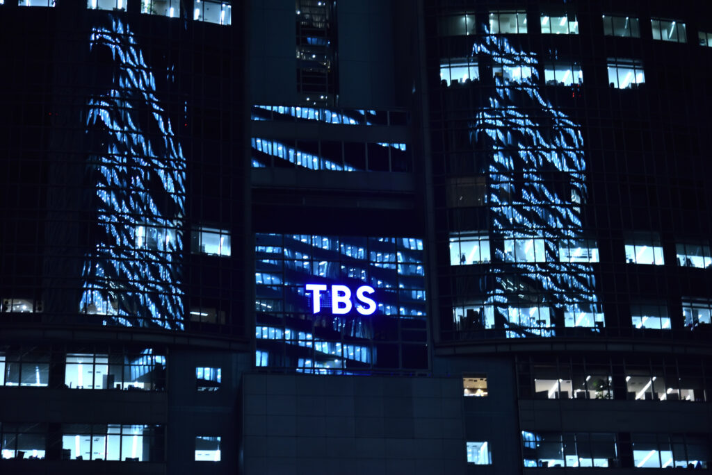日比谷から赤坂 TBS ビルに投影されてるプロジェクションマッピング