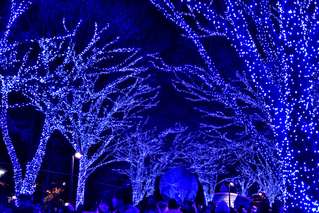 12/6-25 冬を彩るイルミネーションイベント「青の洞窟 SHIBUYA」が開催 今年は「青の洞窟 – THE SNOW DOME -」が新たに登場し、幻想的なスノードームの映像が映し出される巨大な球体バルーンが話題。夕暮れから点灯する青一色のイルミネーションが、渋谷公園通りから代々木公園ケヤキ並木までのエリアを壮大なスケールで包み込みます。