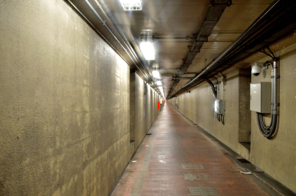 国道246 二子玉川 左折多摩川下流に向かう 今日の目的地 東扇島に向かう 京浜運河下の人道トンネル 関門トンネルを思い出した 今日は休日 通行する人がいない
