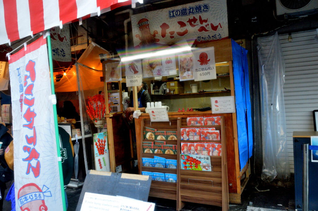 何時もお客さんが並んでる タコせんべい お客さんが並ぶとお店開店8:45からと