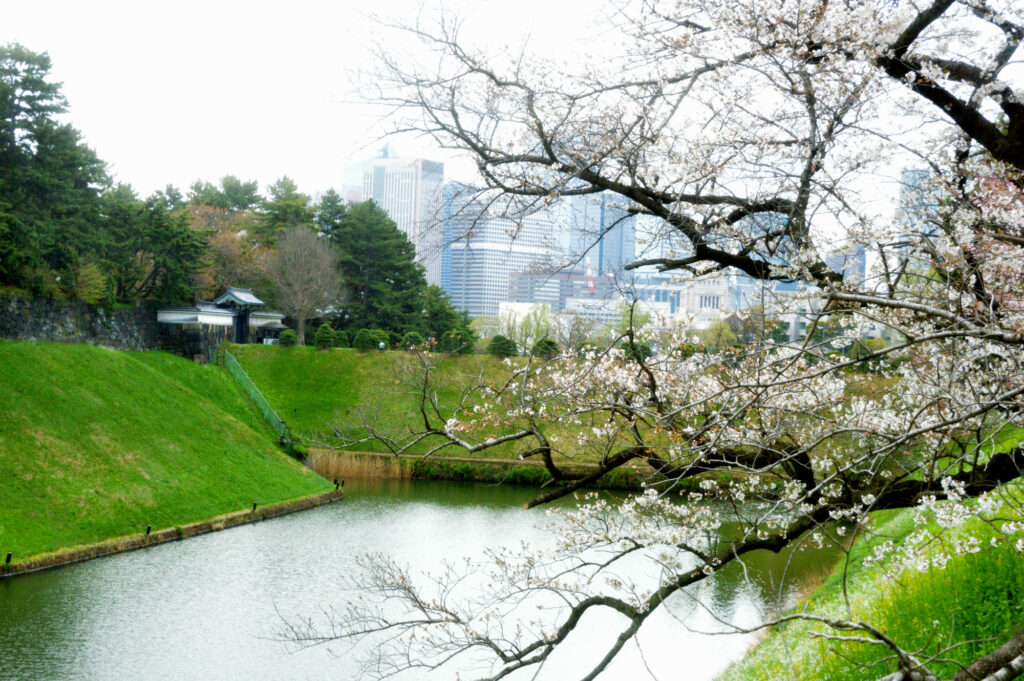 千鳥ヶ淵公園 半蔵門 遠くに国会議事堂が見える