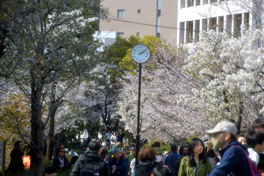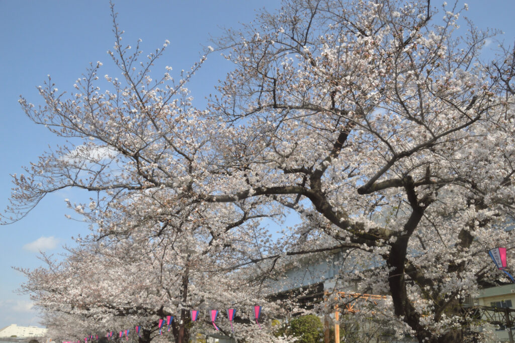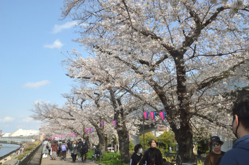 言問橋袂 ミヤビ ここから 隅田公園 桜橋過ぎ迄 看板によると43種類が咲き始める