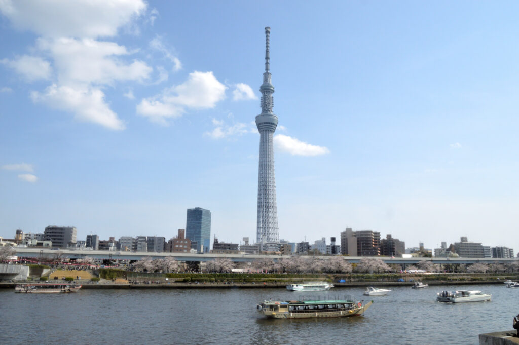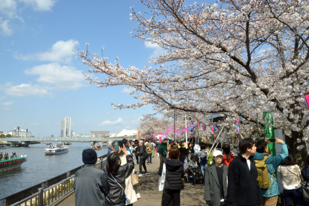 桜橋を渡り都心に向かう