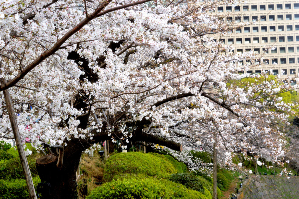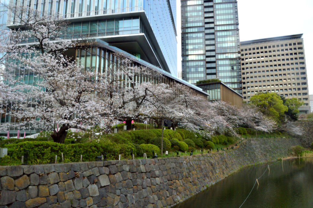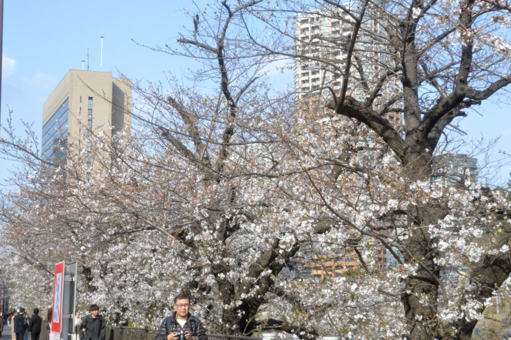 隅田川から下谷 上野から神田川沿いにお茶の水 湯島聖堂 順天堂大学病院から飯田橋 水道橋を抜け お濠沿いに市ヶ谷に ここの桜はまだ3分咲 お濠の風が影響してるのかな