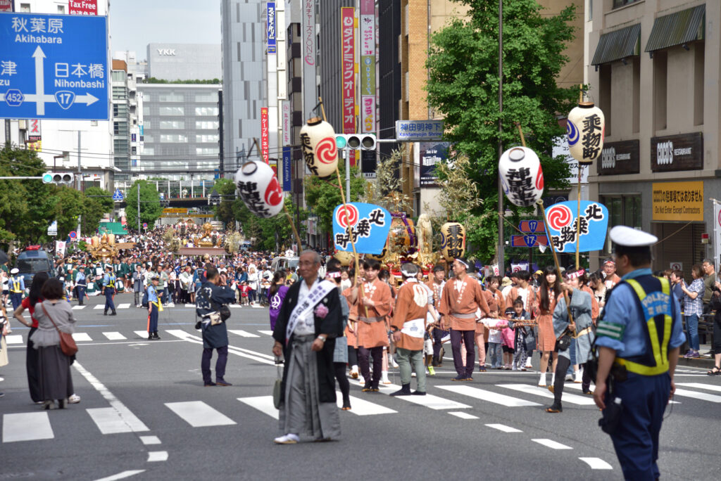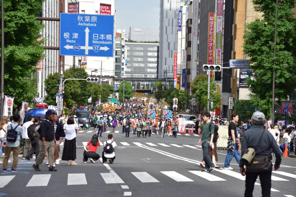 神田明神下通り(交通規制)と旧中山道と交わる所で待機