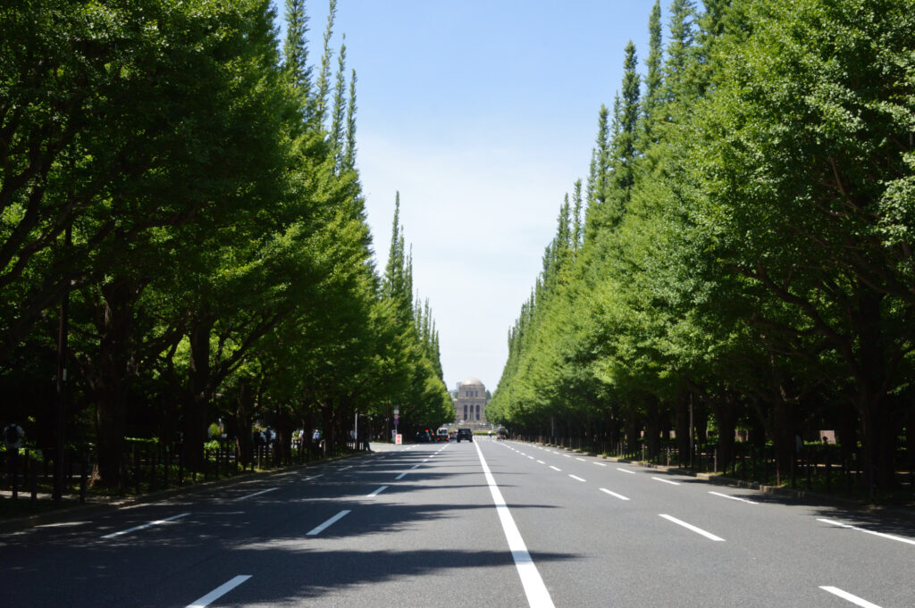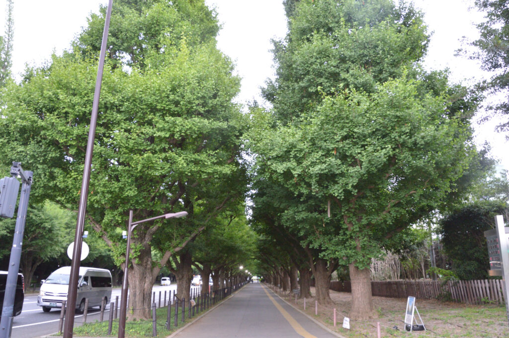 秩父宮ラクビー場 この銀杏並木は神宮外苑再開発で 移植 伐採 何時までこの景色が見えるだろう 本当に再開発は必要だろうか