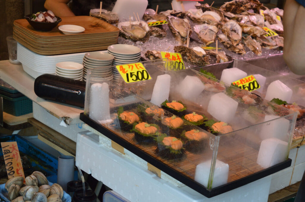 久しぶりに築地 癌研 採血 その後 場外に買い物 インバウンドの観光客が 思っていたより少ない 月曜日だからか