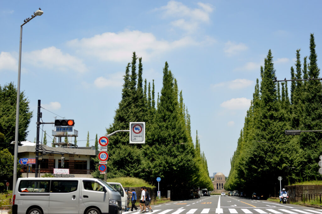 正面の風景は変わらないようで向かって左手には空は見えなく神宮球場が迫ってくる